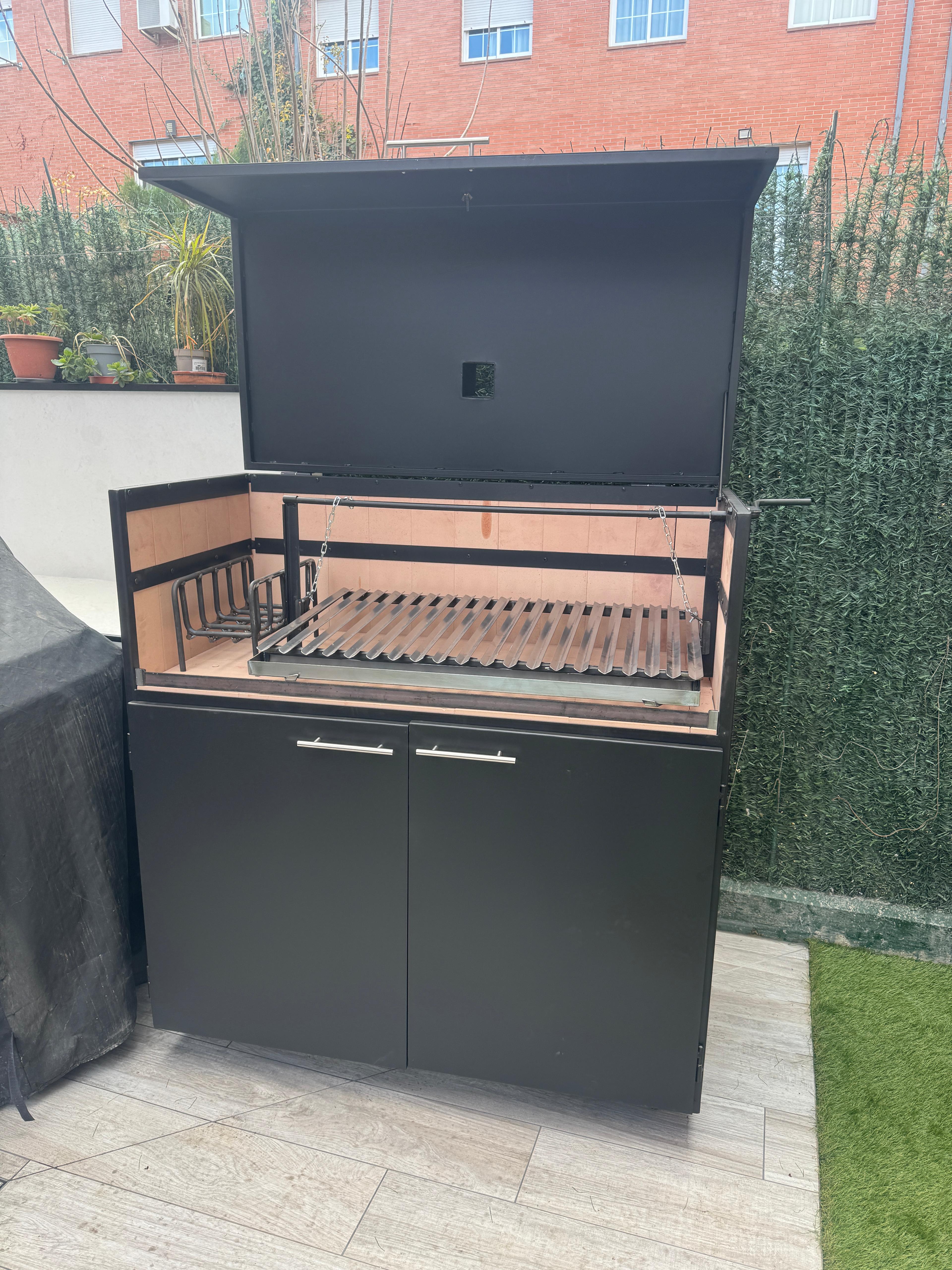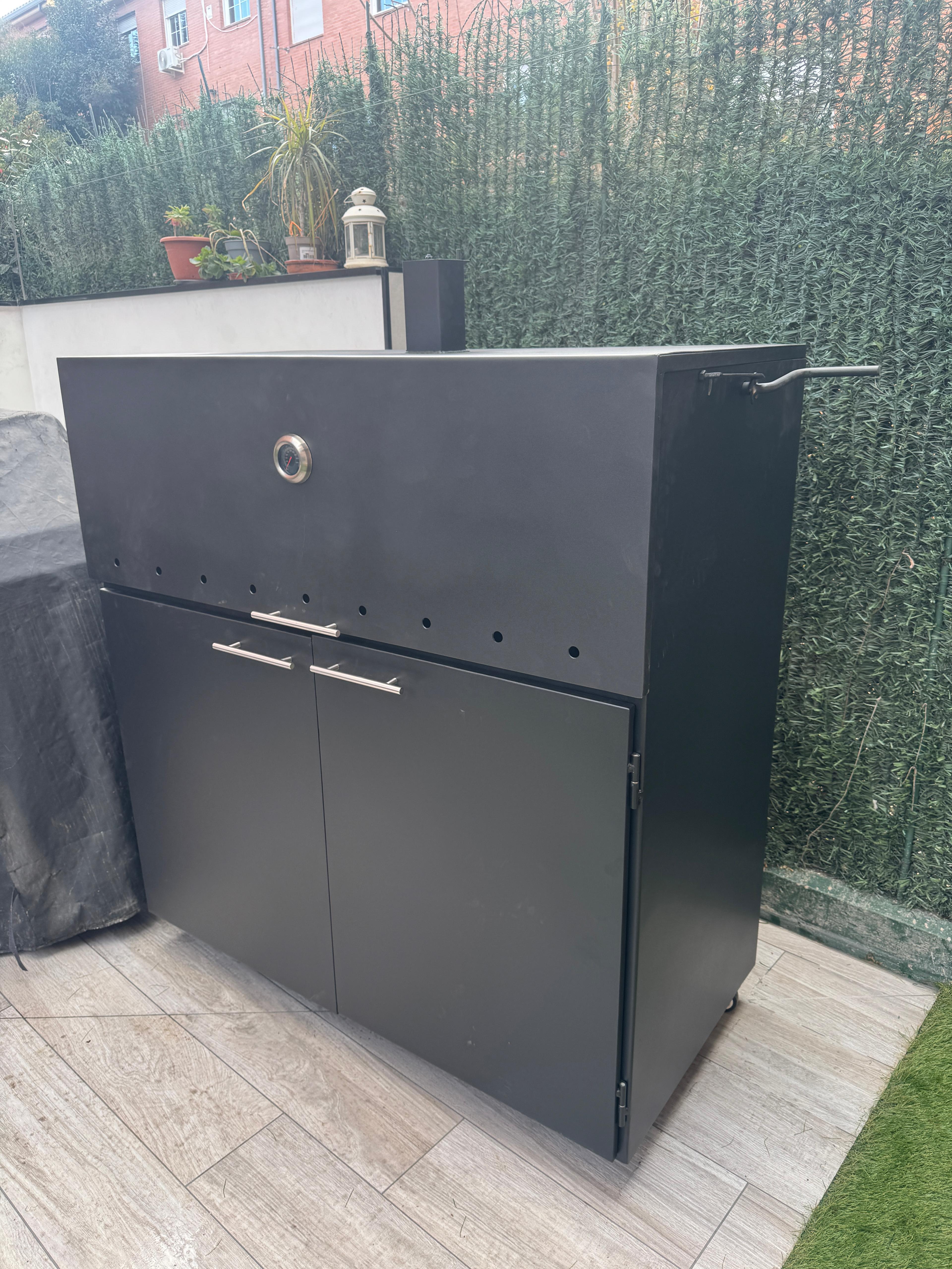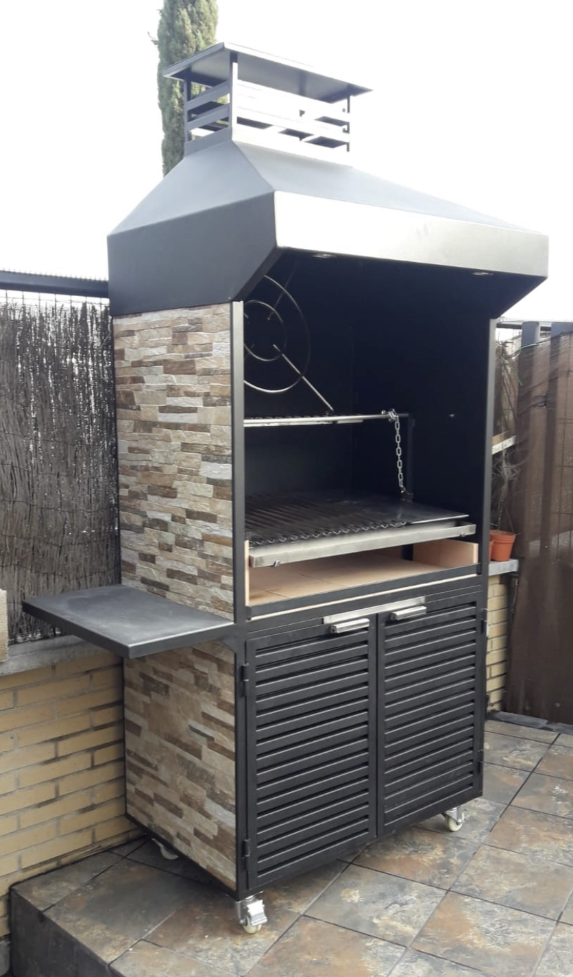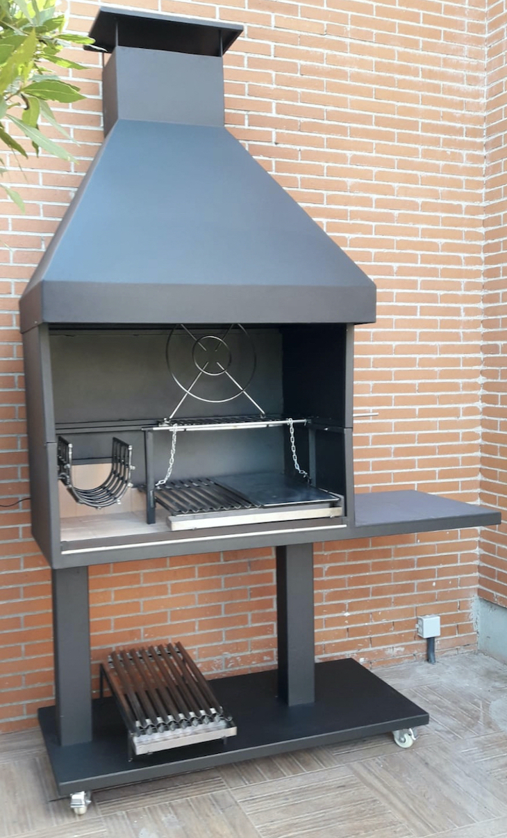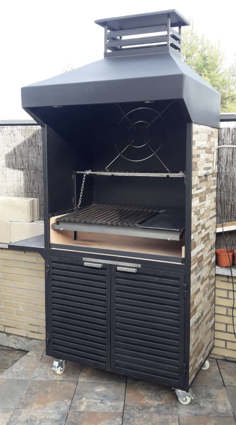 La barbacoa móvil incorpora parrilla y quemador en un diseño compacto, sólido y fácil de mover, ideal para quienes buscan practicidad y libertad de uso sin renunciar a una estética cuidada ni a acabados personalizados. Su estructura metálica robusta y su diseño eficiente permiten aprovechar al máximo el espacio, ofreciendo una solución versátil y completamente adaptable a cualquier entorno exterior.